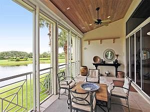 Premium lakeside luxury showcases this soft contemporary 2BR + study with any choice of membership that offers a stunning great room - complete with volume, coffered, double-crown ceiling and arched column, plus premium select hardwood flooring, foyer w/marble inlay, elegant marble in master bath, plantation shutters, wet bar and screened, lakeside loggia with private water view. Gorgeous paneled cabinets and granite grace the spacious kitchen and adjoining nook, complete with arched window and huge pass-through to dining room. Popular Palms setting with perfect SE exposure over the lake for morning tea or candlelit lakeside evenings. Terrific bundle of features includes: elevator, full house water filtration, pantry, intercom and sound system, central vac, one-touch lighting and 2011 AC.