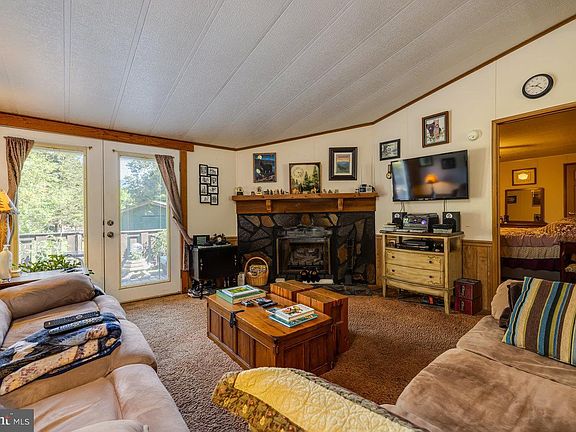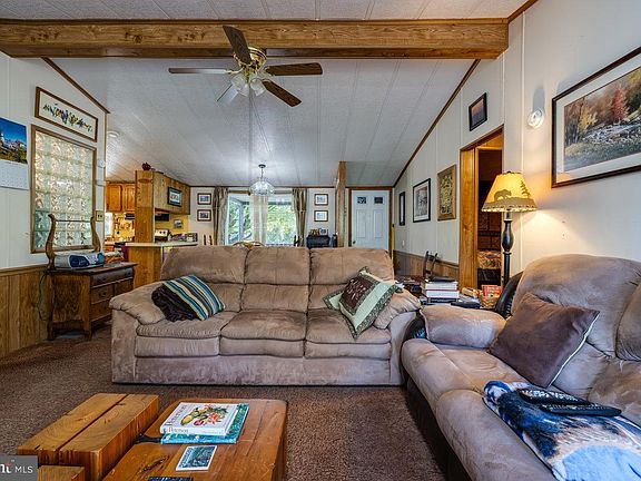 Handsome Manufactured Home! This 3 BR 2 BA home is in a desirable price range! Situated on two beautiful, level lots totaling approx. 1.2 Ac. This home has an open floor plan creating a large living/dining area. Primary bedroom has private bath! Lovely large covered front porch with shade trees in the front yard! Why rent when you can own?!