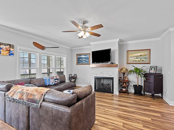 Gas log fireplaceYear-round porchAll brick homeTile showerSpa-inspired bathCenter islandQuartz countertops