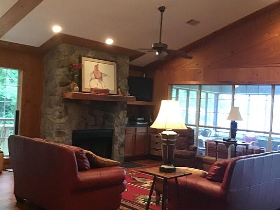 Lovely 3 bedroom 3 bath lake home with fabulous boathouse located in a wonderful fishing area on Lake D'arbonne. Large 17 x 13 back porch for visiting along with 2 deck areas and covered back porch for entertaining. Vaulted ceilings with Lovely exposed Beams, wood burning stone fireplace with gas starter, wet bar, and dining room with lake view. Features beautiful solid wood flooring throughout the top floor and slate flooring downstairs. Home has never flooded. The boathouse has entertaining area and stalls built for pontoon and bass boats.