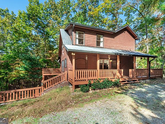 3 Bedrooms | 3 Baths | 1.4 Acres (Two Lots Included) Discover your mountain retreat in the sought-after Coosawattee River Resort! This inviting 3-bedroom, 3-bath cabin sits on 1.4 wooded acres and includes an adjoining lot for added privacy or future use. Conveniently located just moments from the Eagle Mountain gate, this property combines rustic charm with practical comfort and versatile living spaces. Pull right up to the main level with easy parking and only three steps to enter. Inside, the main level features a spacious kitchen with plenty of cabinets and counter space, a dining area, and a cozy living room with a gas fireplace-perfect for chilly mountain evenings. You'll also find a bedroom, full bath, and laundry on this level for easy one-level living. Step outside to the covered deck, where you can relax on the swing and enjoy the peaceful wooded setting. Upstairs, the private master suite offers a serene retreat with a covered porch, walk-in closet, and full bath. The loft area just outside the suite makes an ideal spot for reading, relaxing, or working remotely. The fully finished daylight basement provides even more living space with a den featuring a second gas fireplace, a third bedroom, a full bath, and a recreation room with a pool table. With its own exterior entrance and level parking, this level offers excellent potential for a separate guest suite or rental setup-by adding a small kitchenette for extra convenience. Whether you're looking for a full-time home, vacation getaway, or income-producing short-term rental, this cabin is a must see. Enjoy all the resort amenities including river access, pools, fitness facilities, heated and outdoor pools, tennis and activities -all from the comfort of your own wooded haven. (Annual HOA fees stated are for the two lots which are separate and have not been combined. Combining the lots may reduce annual fees.) Arrow Exterminators recently 10-2025 inspected and indicated no evidence of termites. Letter provided on request.