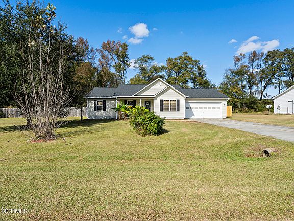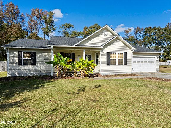 Welcome to this charming one-story ranch home in Southwest Jacksonville, NC. With 3 bedrooms, 2 bathrooms, and a spacious two-car garage, this residence offers the perfect opportunity for first-time homebuyers or savvy investors. Nestled on a peaceful cul-de-sac street with no through traffic, you'll find the covered front porch inviting you to step inside. The living room features vaulted ceilings, creating an open and airy atmosphere. The kitchen is equipped with beautiful granite countertops and stainless steel appliances & the refrigerator is included in the sale. Convenience is key with the laundry room strategically positioned between the kitchen and the garage, making multitasking a breeze & the washer and dryer are also included. The master bedroom is complete with an en suite bathroom, a walk-in closet, and an additional standard closet, providing ample storage options. Work from home? There's a home office set up on the back side of the garage that is a great retreat to get stuff done without being in the middle of the chaos. Step outside to the fenced backyard, where your two-legged and four-legged loved ones can play safely and freely. The property features a whole-home generator. While the sellers have never used it, it's served by a propane tank that hasn't seen use either. The seller mentions that the generator may require a new battery, but for a potential homeowner who values preparedness, it's a valuable asset that could provide power during unexpected outages. inspection is recommended. Rest easy knowing that this property has a roof replaced in 2022 and it features an off-site septic system, allowing you to enjoy the whole yard.. This home is a fantastic opportunity to enjoy comfortable, convenient living in a desirable location with easy access to MCAS New River, Stone Bay, and Camp Lejeune. Don't miss your chance to make this house your home since the seller is offering $5000 to use toward closing costs or credits. Call a Realtor today!