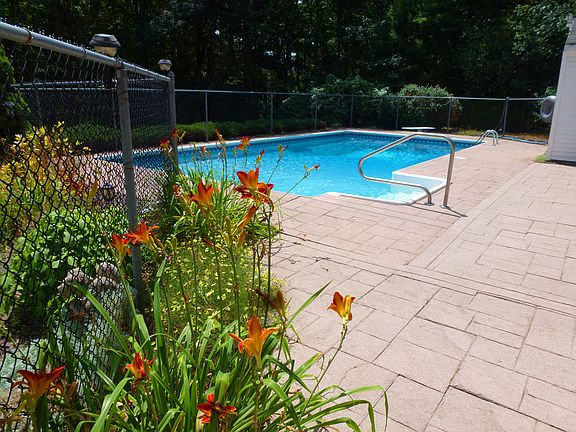 Recently remodeled kitchen with cherry cabinets, granite counter tops, and stainless steel appliances. All three bathrooms have been recently remodeled, one with a full body jet shower. New carpeting in LR/DR. Plenty of closet storage throughout. Finished, heated playroom and office in basement has in-law potential. Screened porch, 12'x24', overlooks 18'x36' swimming pool, surrounded by a large, stamped cement patio with a 10'x12' cabana. Front farmer's porch with gazebo makes an attractive entrance. New asphalt driveway. Beautiful, level, private backyard. Desirable Parker Village, East Dracut location 10-12 minutes from Route 93. Wonderful place to raise a family!