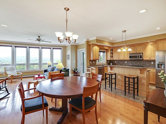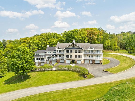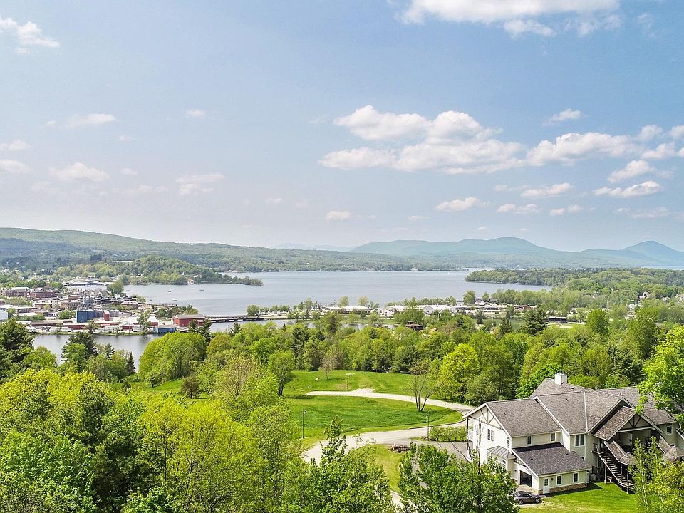 Top of the world views of Lake Memphremagog and the mountains to the west and north. 1 level luxurious condo with over-sized garage and basement storage room. Includes both a covered porch in front and a covered porch in the back. 2 mini splits for a/c. Hardwood floors and tile throughout. Guest bedroom has 3/4 bath. Primary bedroom with lots of closet space and private bath with tub and shower. Office/study with back porch access. Elevator access too, or stairs. Immaculate home that looks brand new. Granite kitchen and baths. 9 foot ceilings throughout plus cathedral in primary. Gas fireplace. 1 mile to downtown and all services. Most convenient place to live with fabulous views. Roof was partially replaced last year. Balance being replaced later this summer. Permits in place for additional units.