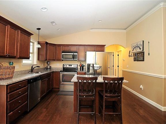 Beautiful and spacious family home with awesome fenced rear yard perfect for a small garden, play area for children and pets! You will love the Startex floor plan with notable upgrades! Inviting open design with a split floor plan. Living room has hardwood floors, crown molding and chair rail accents and cozy fireplace with convenient easy starting gas logs. This large space is perfect for family gatherings as the open layout provides mingling between the living room, dining area and kitchen. The dining area has nice natural light from the glassed doors which open to the covered patio in the rear yard. Enjoy stylish granite in the kitchen and in both full bathrooms! Save big with the full, stainless kitchen appliance package which includes the refrigerator, stove/range, dishwasher and built in microwave! Abundant cabinetry and a center island suitable for two bar stools is complimented by a pantry. The master suite has a full, private master bath with walk in shower and granite counter tops. Entry from the two car garage is to the laundry room with both shelving and a storage closet. The second and third bedrooms are off the living room area and these ample rooms share a pretty full bathroom with a shower/tub combination, granite countertop sink and linen closet. Children and pets can play in the rear fenced yard (wooden privacy fence) while you relax on the covered patio. Great location in a thriving neighborhood. Within minutes of shopping and family dining spots! Pheasant Ridge is located within the USDA eligibility area which means that if the buyer qualifies for a USDA loan they can buy the home with zero down payment.