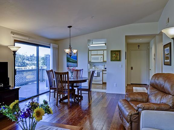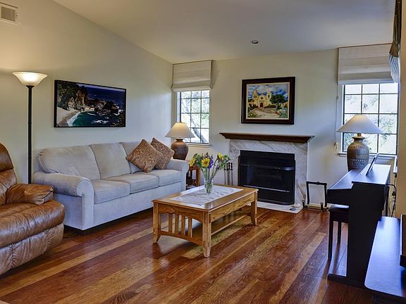Pristine unit in The Oaks community of Del Rey Oaks, the sunbelt of the Monterey Peninsula. Location is everything and this private and move-in ready 2 bed, 2 bath condo is one of only four within this popular complex without a unit above or below. Features include beautiful wide plank fir floors, like new SS appliances, lovely gas-log fireplace, lots of natural light and serene views of the hills and majestic oaks. Custom drapery, newer high efficiency forced-air furnace and tankless H2O heater are added value. The Oaks has great walking paths, in-ground pool and hot tub, tennis court, reserved parking + extra storage.
