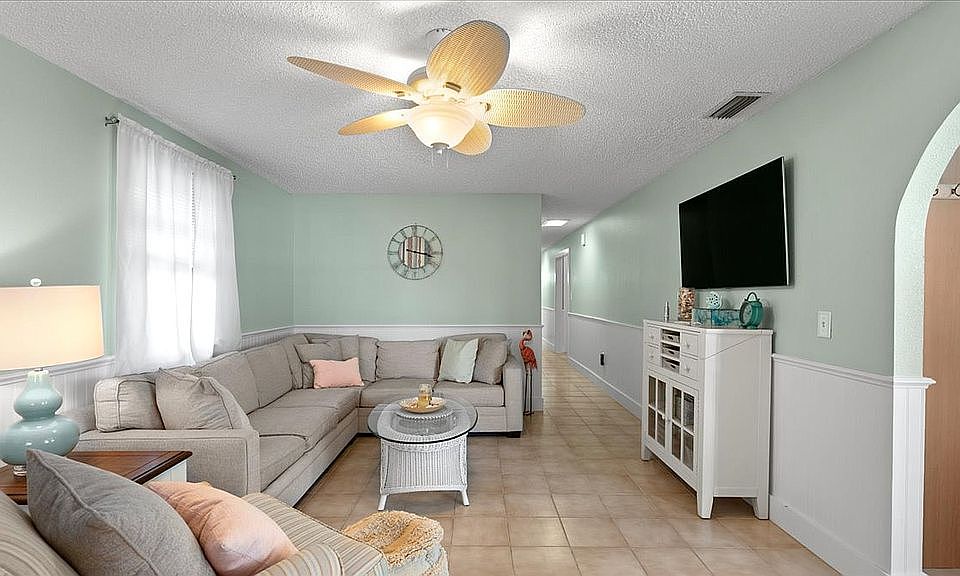 3 bed, 2 bath, super clean and cute! 11 houses to beach, east side of A1A! 2 miles to the cruise ships, 45 min to Orlando. Turnkey vacation or AirBnB spot. Fenced. Updated 2016: new roof and insulation, electric, plumbing, new white vinyl fencing and shutters, new air conditioning with heat strip, with additional duct work installed, hurricane low energy windows installed throughout, added water conditioning system, added new 50 gallon hot water heater, all new appliances with the exception of fridge, new ceiling fans, new bathroom exhaust fans, new paint inside and out. Highest and best offer due by 2/14 close of business.
