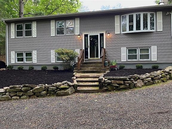 This home is far from your average raised ranch, boasting tons of storage space, a mudroom space off the garage, walkout basement that is fully finished, and includes a full bathroom on the lower level. Set on a private 3.77-acre lot, this beautifully maintained 3-bedroom, 3-bath home offers the perfect blend of comfort, space, and quiet backyard magic. Step out from the dining room slider onto a spacious deck and into a backyard strung with soft outdoor lights—creating a dreamy, peaceful backdrop. Inside, you’ll find new hardwood flooring throughout, freshly painted interiors, and newer carpet in two bedrooms. The primary bedroom features its own full en-suite bathroom for added privacy. The open-concept kitchen is filled with natural light, thanks to massive windows overlooking the backyard—making even doing the dishes feel a little less like a chore. A large two-car garage with storage above provides plenty of room for vehicles, tools, and all the extras. Peaceful, bright, and move-in ready. Additional highlights include a large circular driveway, dead-end street with access to the beautiful George B. Parker Woodland Wildlife Refuge!