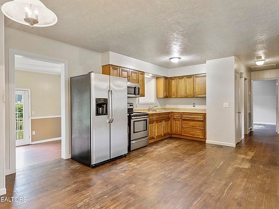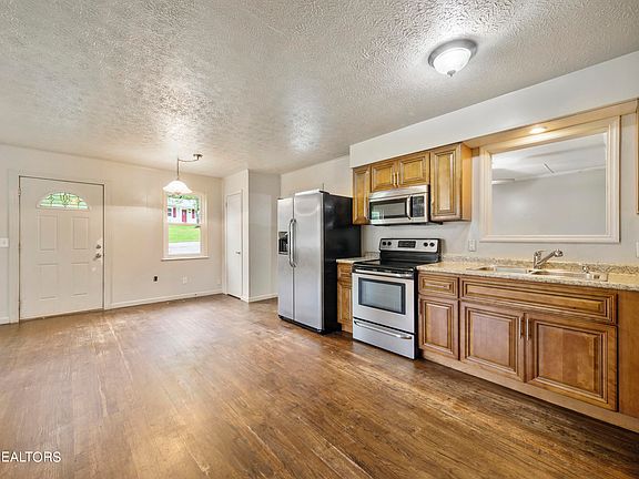 Have you been on the lookout for an affordable home within Caryville's city limits? Your search ends right here! This house has so much potential. A little bit of painting and some tender loving care, and you'll have yourself a truly fantastic home. As soon as you step inside, the open-concept living and kitchen area catches your eye. Those original hardwood floors run throughout most of the house - imagine refinishing them and restoring their former glory. The kitchen boasts stainless steel appliances and gorgeous cabinetry. When you make your way into the family room or recreation area, the abundance of natural light streaming from the bay windows is hard to miss. Right off the family room, there's a laundry room and a full bath for convenience. All three bedrooms are pretty much the same size, making it easy to consider transforming the family room into a wonderful master suite with just a little bit of effort. On the outside, you'll find brand new vinyl siding, a spacious deck, and a 0.34-acre yard that's mostly level. The backyard is partially fenced and offers a handy storage building. The best part? This home qualifies for 100% financing. Located within minutes of Cove Lake State Park, Norris Lake, I-75, and ATV trails - this won't last long. Call today for your private tour!