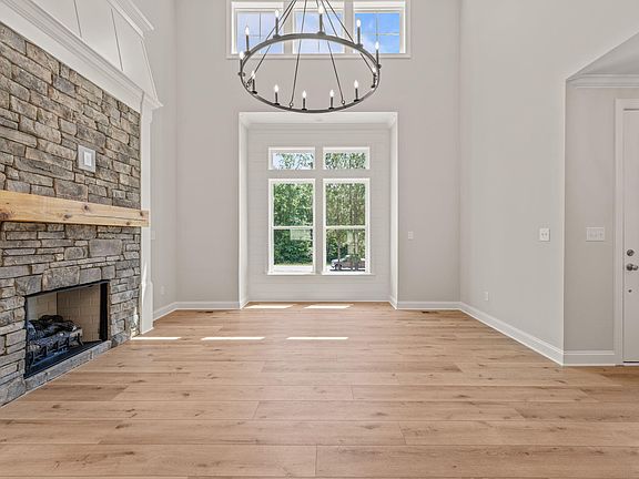 This charming modern farmhouse by AWB Homes in Pilot Ridge also offers a touch of rustic character, thoughtfully designed for comfort and everyday living. The main level features a spacious family room with a vaulted ceiling and cozy fireplace, creating an inviting atmosphere that flows seamlessly into the well-appointed kitchen. Enjoy an oversized island, generous counter space, and a walk-in pantry—perfect for both daily living and entertaining. The first-floor owner's suite is a private retreat with a walk-in shower, soaking tub, double sinks, and a spacious walk-in closet. A convenient main floor laundry room adds ease to your routine. Upstairs, two additional bedrooms, a full bath, and a large bonus room provide flexible space for family or guests. Step outside to the covered rear patio, ideal for relaxing or entertaining year-round. Superior build quality is evident, with details such as efficiently insulated exterior walls and top-notch finishes throughout.