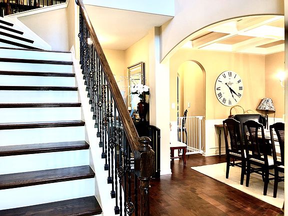 Enter into the 2nd story foyer where hardwood flooring flows through the formal dining room & open area featuring the kitchen, breakfast area and family room. Kitchen with granite counters, island, stainless appliances,& pantry. Wood stairs lead to a sitting area at the top of the stairs and all spacious bedrooms. Double entry into master suite with sitting area. Master bath with dual vanity, granite counters, tile floors, custom cabinets, tile shower and soaker tub. LG walk in closet.