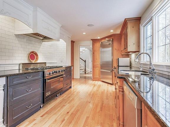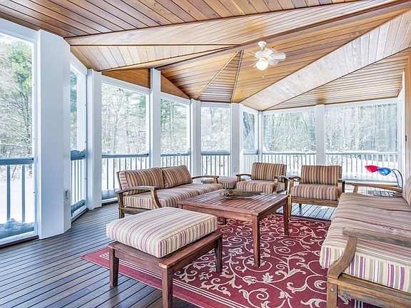 Incredible custom built Carlisle Colonial on cul-de-sac; gorgeous landscaping with specimen flowering shrubs. Exquisite detail throughout includes hardwood floors, moldings, and wainscoting. Flexible spaces for the changing growing family. Enter a formal sunny foyer leading to a wonderful living area with hand-built fieldstone fireplace and a large country-style eat-in kitchen with top of the line Viking appliances, custom cabinetry and views of the private yard; perfect for entertaining or relaxing. Through the family room and formal dining room is access to the architecturally designed screened porch. Second front door opens into a mudroom and laundry that connect to the garage. The second floor is sunny and bright: a lovely master suite has walk-in custom closet and beautiful bath. There are three additional bedrooms, one ensuite, family bath and an airy nook with French doors to private deck. Lower level has a bath with shower, play area, third garage and huge workshop/storage.