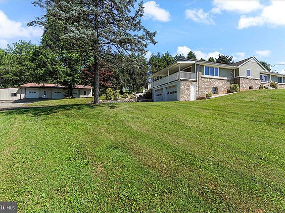 Welcome to your dream home! Nestled on 2 acres of picturesque land, this charming brick ranch offers a tranquil retreat with stunning country views in every direction. This home has three cozy bedrooms and one l spacious full bath. The large living room features vaulted ceilings, plenty of recessed lights, ceiling fan, built-ins, and a wall-mounted TV. There is direct access to the covered porch. Plenty of room to entertaining or just enjoying. The kitchen has been updated and features Corian countertops, pretty backsplash, coffee station, pantry, and an island. Downstairs you will find an unfinished basement ready to transform your vision into reality offering endless possibilities to tailor the space to your needs. There is no lack of garage space at this home with a 2-car attached garage and a bonus 3-car detached garage with an attached metal shed and an extra detached shed, what a haven for car enthusiasts or hobbyists, providing ample space for storage or workshop activities. The home features newer siding and gutters, replacement windows and a heater. With its peaceful surroundings and inviting atmosphere, this property is ready to welcome you home! Schedule your showing today, this one will go quick!