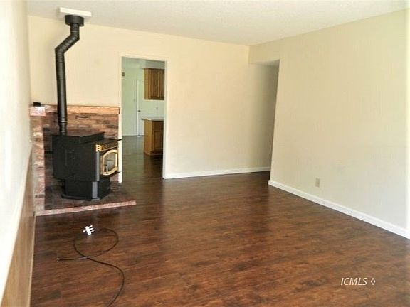- Pellet Stove, Fireplace, Flooring- Laminate