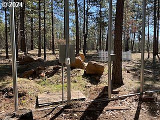 Beautiful five acre parcel waiting for you to vacation on or build your home. Electricity is on the property. Tress. Completely fenced with two gates. Storage shed and out house Large Metal RV Cover. Peace and serene with lots of wildlife.