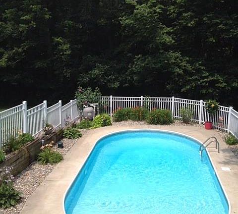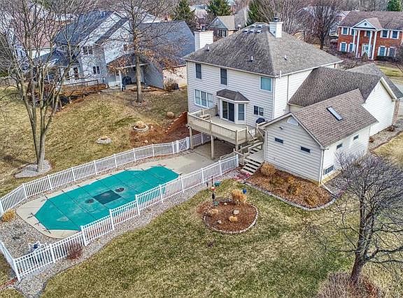 Perfect for your growing family, this home has it all! Located on near 1/2 acre on private wooded lot in convenient location! Main floor features formal living/dining rooms, laundry, family room w/large brick gas fireplace & opens in to spacious eat-in kitchen w/stainless appliances, desk area that opens to party-size deck w/gorgeous views of pool & woods. 2nd floor boasts an en suite master w/fireplace, bath w/separate tub/shower & large walk-in closet; & 3 more bedrooms & full bath. Fabulous walkout lower level has a large family room, 3rd full bath, newer carpet, bar area & room for more finish space & storage w/utiity doors for easy pool supply convenience. Home is perfect for entertaining family & friends w/plenty of room inside & out. 30x15 pool will be open soon & ready to enjoy! The perfect "man-cave" is 22x14 & is attached to garage & opens to deck - perfect for a workshop, office or play area! Updates inc paint, appliances, W/H, lighting, pool cover, landscaping etc!
