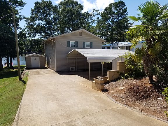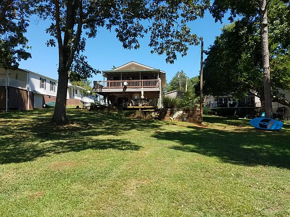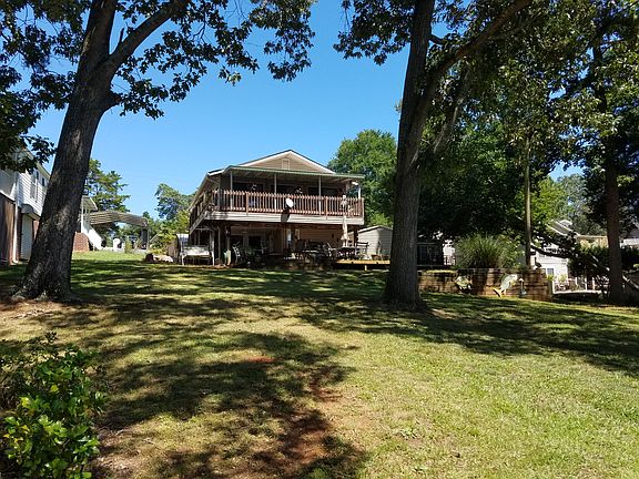 --LAKEFRONT DEEP WATER-- 2 complete homes in one, both fully furnished with 2 out buildings, covered dock and great views on a grassy open lot hard to find lot like this. The main level includes 3 bedrooms and 1 bath, open living room and dining room with 3 sliding glass doors opening to a full deck from side to side. Downstairs is 1 bedroom 1 bath with full kitchen, living room with an electric fireplace, dining room and space for another bed and chest already in place. Outside is a covered area with an approximately 20x16 deck with all deck furniture for entertaining. Both upstairs and downstairs have separate hvac units. There is ample parking with 2 driveways for at least 10 cars, a 2 car carport and 2 out buildings both approx. 8x12 each. Go step down to the lake and you have a covered dock with 2 jet ski lifts and a boat lift. Easy access from I-85 without the road noise. This kind of lot and house are hard to find and it all comes fully furnished including flat screen tvs 2 sets of stoves and refrigerators and a washer and dryer. Taxes were based on 6% rental although it was NOT a rental. Call 864-561-0206