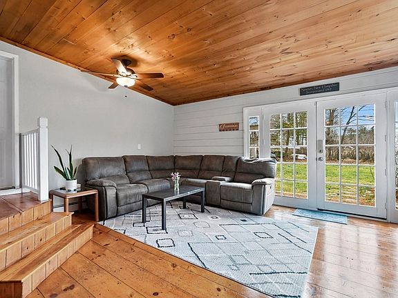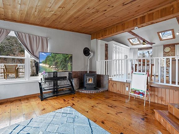 Have you dreamed of living in a rural area with waterfront and views from almost every room? Don't miss your chance to own an adorable 2-bedroom, 1-bathroom ranch in Newton on Country Pond. Prepare to be impressed with the gorgeous wide pine floors, vaulted ceilings and sun-drenched rooms. The living room offers a pellet stove and direct access to the back deck and the breathtaking yard. Sunsets over Country Pond! The lofted eat in kitchen has a center island with breakfast bar seating, electric stove and ample cabinet space. The bathroom will not disappoint; spacious vanity, clawfoot tub, shower, washer/dryer and gorgeous shiplap detail on the walls. The primary suite has astonishing 180-degree views of the private waterfront back yard, back deck access and plenty of storage space. Find vaulted ceilings with wood detail and loft area in the second bedroom. Just moments to Newton resident town beach - perfect for summer activities!