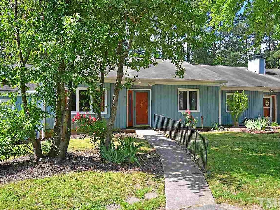 Charming townhome in convenient SW Durham location - 15 minutes to downtown Durham, Duke, UNC or RTP. Spacious rooms with smooth ceilings. Family Room with cozy wood-burning fireplace flows into the Dining Room. Large Kitchen, appliances new in 2016 and eat-in area. Master Bedroom has two closets and private Bath. Second Bedroom has two closets. Fenced backyard with patio, Peach tree and Crepe Myrtle Tree! Attached storage room with shelving. No sign in yard.