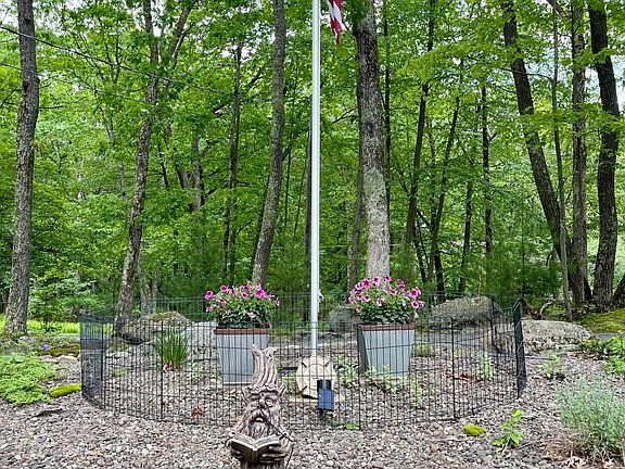 Discover this sprawling custom ranch, in pristine condition offering 3 bedrooms, 2.5 baths in the highly desirable Hemlock Farms Community. This home promises effortless living with its thoughtfully designed layout with a floor plan that offers both privacy & functionality. At one end, the spacious master suite provides a serene retreat, complete with a luxurious en-suite bath & pocket French doors leading to a gorgeous four-season sunroom. The opposite end offers two additional bedrooms with a shared bath that's perfect for family or guests. Situated on a private quiet cul-de-sac lot backing to a green belt with a stream! The heart of the home boasts an open floor plan with hardwood floors throughout featuring a living/family room with gas stone fireplace, dining room & a well-appointed kitchen all with cathedral tongue and groove cedar. Here you will find solid oak cabinetry, granite countertops, new appliances, sink, double wall oven, new gas converted cooktop & a convenient pantry. You will find various dining options, including dedicated dining area, cozy bar stool space & a spectacular dining option in the beautiful four-season sunroom. Step outside to the quaint back deck, where you can enjoy coffee, cocktails or sunsets while overlooking your private oasis. Additional features include updated master & secondary baths, Anderson windows throughout, 7 skylights with shades make for an abundance of natural light. The rear screen porch has new Eze-Breeze sliding windows. Freshly painted inside & out, fenced in rear yard with freshly stained deck, 12x20 storage shed. RV/Boat parking that is not visible from road along with 5 additional parking spaces. Newer front landscaping. This house boasts a fully insulated unfinished 7' high basement with access from garage & backyard for an abundance of storage & is ready to be transformed into whatever you desire.