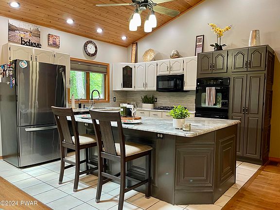 - Cathedral Ceiling(s), Wired for Sound, Walk-In Closet(s), Stone Counters, Sound System, Pantry, Open Floorplan, Natural Woodwork, Kitchen Island, Granite Counters, Eat-in Kitchen, Double Vanity, Ceiling Fan(s)