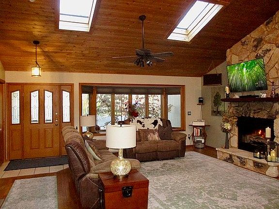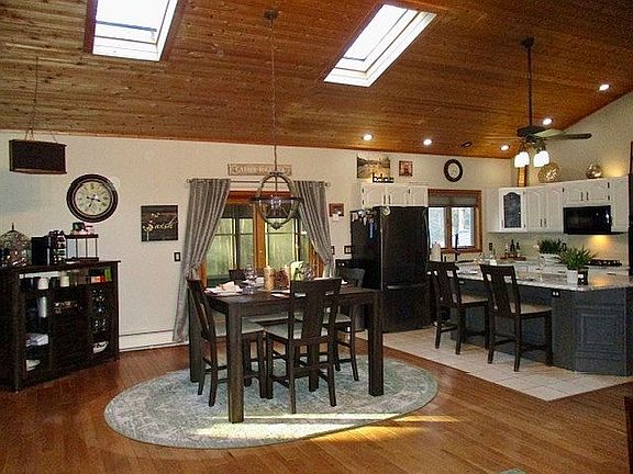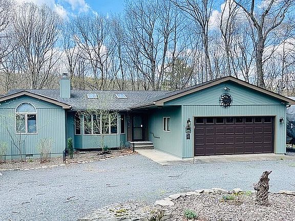 Realtors bring your qualified buyers and discover this sprawling custom ranch offering 3 bedrooms, 2.5 baths in the highly desirable Hemlock Farms Community. Situated on a private quiet cul-de-sac lot backing to a green belt with a stream! The open floor plan with hardwood floors throughout is designed for easy living, featuring a living/family with gas stone fireplace, dining room and a well-appointed kitchen all with cathedral tongue and groove cedar. Here you will find solid oak cabinetry, granite countertops, new appliances, sink, double wall oven, new gas converted cooktop and a convenient pantry. You will find various dining options, including dedicated dining area, cozy bar stool space and a beautiful dining option in the gorgeous 4 season sunroom that connects to the master bedroom with pocket French doors as well as to the dining room with French doors. House features a split floor plan creating a dedicated Master Bedroom with spa like Ensuite. Additional features include updated master & secondary baths, Anderson windows throughout, 7 skylights with shades make for an abundance of natural light. The rear screen porch has new EZ breeze sliding windows. Freshly painted inside and out, fenced in rear yard with freshly stained deck, 12x20 storage shed. RV/Boat parking that is not visible from road along with 5 additional parking spaces. New front landscaping and mature trees trimmed 2022. This house boasts a fully insulated unfinished 7’ high basement with access from garage and backyard for an abundance of storage as well as 3 separate access points to attic with pulldown stairs in hallway and garage. Central Air/Heat Pump has warranty. Every room has backup oil filled electric baseboard heat, making it the perfect snowbird home. Realtor commission 3%. Fridge, free standing freezer, washer and dryer included in sale. All furnishings are available to convey.