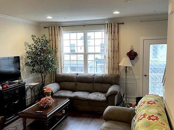 Stunning Alexandria model featuring hardwood flooring throughout. Enter into a lovely sitting area featuring crown molding, wainscoting and access to the garage and laundry room. The stairway takes you to the open concept living area. This level features an open kitchen with white cabinetry, granite counters, dining area, undermount sink and a spacious pantry. The formal dining room features crown molding and wainscoting and is open to the living room. Off of the living room is a charming balcony affording views of the Delaware River. The third level features the primary bedroom with crown molding and wainscoting, spacious walk-in closet and a full bath with double vanity. The hall bath features a tub/shower combination and the second bedroom is spacious and features a walk-in closet. The fourth level features a large bedroom and has a large balcony with views of the river. This level also has a large walk-in closet as well as a full bath. Hardwood flooring and sliders to the balcony complete the features of this very spacious room. Great commuting location - easy walk to train, 1 mile to 95 - and nearby Turnpike - well situated for commutes to Philadelphia, Princeton and New York.The elevator is currently locked. Should a tenant wish to use the elevator, they will be required to pay a yearly maintenance fee and maintain a landline. 2025-03-25
