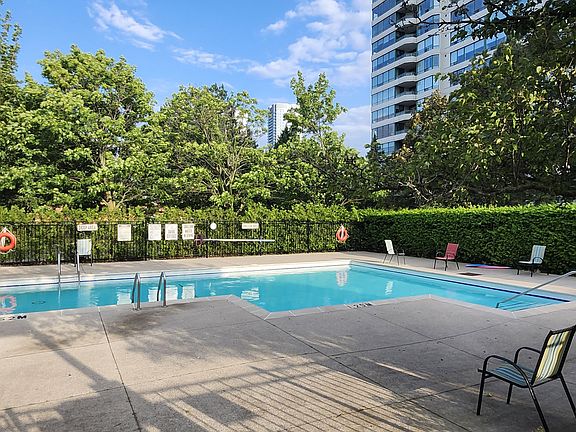 Fabulous Corner Unit With Balcony. Ensuite Laundry. New Laminate Flooring In Living Room, Bedrooms. Mater Bedroom Ensuite With Separate Shower Stall, Walk In Closet and Double Closet in Master Bedroom. Exposure In All Directions. Walk to Transit and Shopping. 24 Hours Gatehouse Security. Beautifully Renovated Common Element Halls and Entrance. Outdoor Pool with Beautiful Landscaping. Visiitor Parking. Bridge, Stove, Built In Dishwasher, Washer, Dryer, Laminate Floor. Ceramic in Kitchen, Baths and Hall. Ceramic Backsplash. Mirrored Closet Doors In Hall. Existing Window Covers and light Fixtures. Two Pull Baths, Balcony. Two New Central Air Conditioning and Heating Units.
