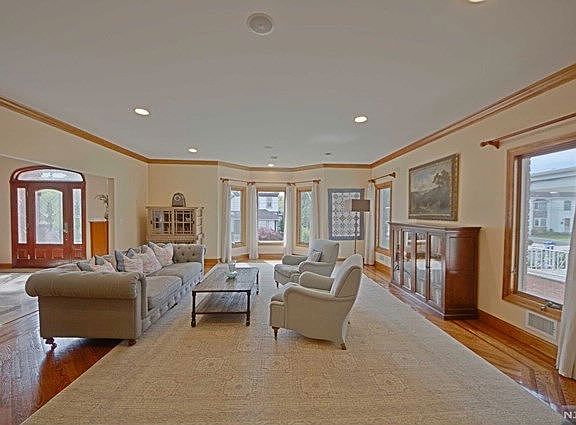 BEAUTIFUL YOUNG CUSTOM BUILT ALL BRICK COLONIAL IS ONLY 2 BLOCKS FROM NJ TRANSIT BUS STOP TO NYC. GREAT LOCATION WITH GREAT RUTHERFORD SCHOOLS. LARGE LR W/GAS FPL, SPACIOUS FORMAL DR W/FRENCH DOORS LEADING TO THE CHEF'S DELIGHT GOURMET KITCHEN W/GRANITE TOPS,CENTER ISLAND,TOP OF THE LINE APPLIANCES INCLUDING THERMADOR 6 BURNER STOVE AND SPACIOUS BREAKFAST RM/FAMILY RM WITH WET BAR LEADING YOU TO SLIDING DOOR TO DECK.THE OFFICE/DEN AND POWDER ROOM COMPLETE THE FIRST LEVEL. LUXURY MASTER SUITE W/CATHEDRAL CEILING& SKYLIGHTS LEAD TO YOUR OWN BALCONY, OVER-SIZED WALK IN CLOSET MASTER BTH W/WHIRLPOOL AND SEPARATE SHOWER W/BODY MASSAGE. 2ND FL HAS 3 OTHER BEDROOMS W/WIC AND CONVENIENTLY LOCATED LAUNDRY RM. FULL,FINISHED WALK OUT BASEMENT/FULL BTH AND BIG MOVIE THEATER TO ENTERTAIN.SOME OTHER FEATURES INCLUDE 5 ZONE HEAT,2 C/A/C,INTERCOM,SECURITY SYSTEM,BUILT IN SPEAKERS THROUGHOUT THE HOME.DETACHED 2 CAR GARAGE. CLOSE TO EVERYTHING;SCHOOLS,PARKS,TRANSP.CAN ALSO BE RENTED WITH FURNITURE.
