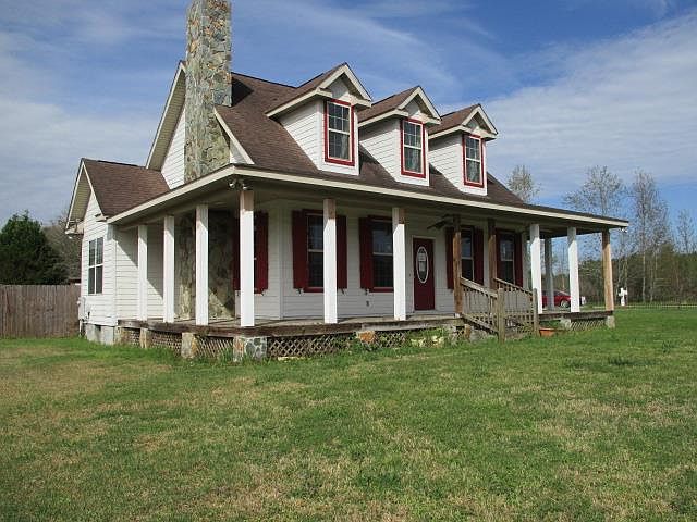 This custom home offers rustic charm and much more! Beautiful pine floors and walls throughout most of the downstairs living area. Spacious kitchen with center island, breakfast nook and adjacent formal dining room. Master bedroom on the main floor with en suite bathroom featuring jacuzzi bath. Two additional bedrooms and full bath upstairs. Two car garage, storage building with loft and wrap around porch!
