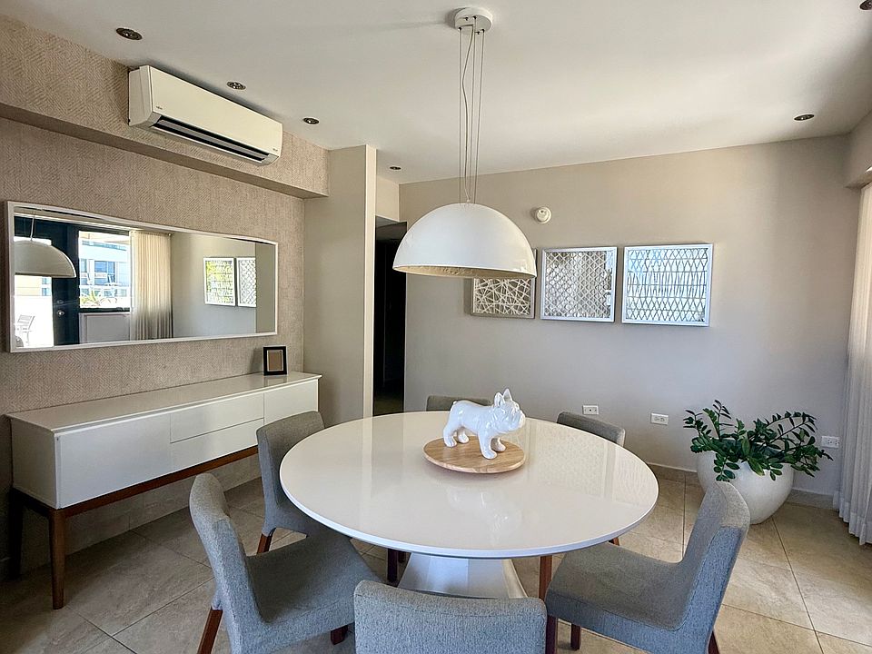 Move into this beautifully furnished and tastefully decorated apartment located on a high floor at Cond. Quantum. Featuring 2 bedrooms, 2 bathrooms, an expansive private terrace perfect for outdoor living, and elegant interiors with custom wallpaper, designer lighting, and refined furnishings. Enjoy 2,400 sq ft of stylish open-concept living with a modern kitchen, spacious dining and living areas, separate laundry room, and underground parking. The building offers exceptional amenities including 24/7 security, a swimming pool, gym, theater room, dog park, and water cistern. Centrally located with easy access to major highways, shopping, and dining. Ready for immediate occupancy. HOA Included Minimum 1 year lease Furnished 2 covered parkings Concierge, generator and water tank Private terrace