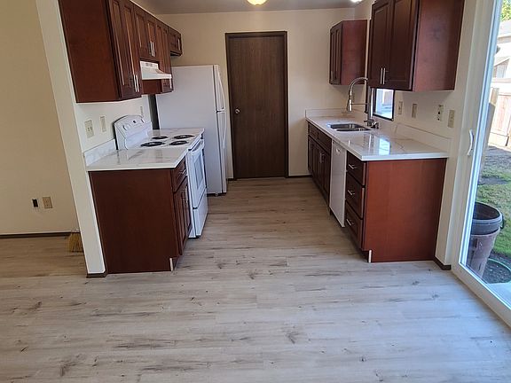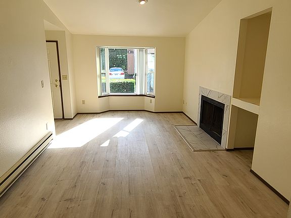 These duplex units were originally built to be sold as condominiums, and thus are large and spacious. This unit has 3 bedrooms and 1.5 bathrooms. The townhouses have open beam ceilings in the lower level, and cathedral ceilings in a very large master bedroom. The rambler style has cathedral ceilings in the living room. Both styles have inside utilities, 1.5 baths, bay windows, garden windows, fireplace, dishwasher, and single car garages. They also have vinyl double pane windows and vertical blinds. The garage doors are new and have an electric garage door opener. Best of all, the yard work is all taken care of by a professional landscaper, so there's no lawn to mow or weeds to pull. We pay for the water, garbage and sewer, while the tenant is responsible for paying the electricity, telephone and cable. All require a $50/person credit check. We do not accept Comprehensive Reusable tenant screening reports as defined by and pursuant to RCW 59.18. One small pet is okay with a $750 refundable pet deposit.