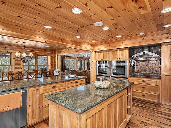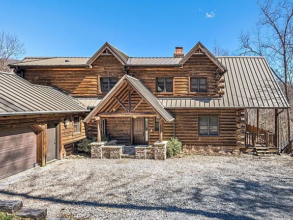 Exceptional custom built, lakefront luxury log home, nestled ceremoniously on Lake Nantahala, speaks quality throughout with top of the line furnishings and accents to make you feel like royalty from the time you walk in the door. You'll be greeted with a beautiful foyer complete with log posts and stone flooring, welcoming you to the home. Gorgeous stone fireplaces, stunning reclaimed wide plank barn wood floors, gourmet kitchen with stainless steel appliances, 4 bedrooms, 5 1/2 bath, office, 2 bonus rooms and beautiful lake and mountain views! 40K W full home generator w/1000 gal propane tank, 2-80 Gal recirculating hot water heaters, security system, whole home audio, full home intercom system. Year round lake water, private dock, jet ski dock, gazebo, beach area, fire pit, 8 person hot tub overlooking the lake...and much much more!