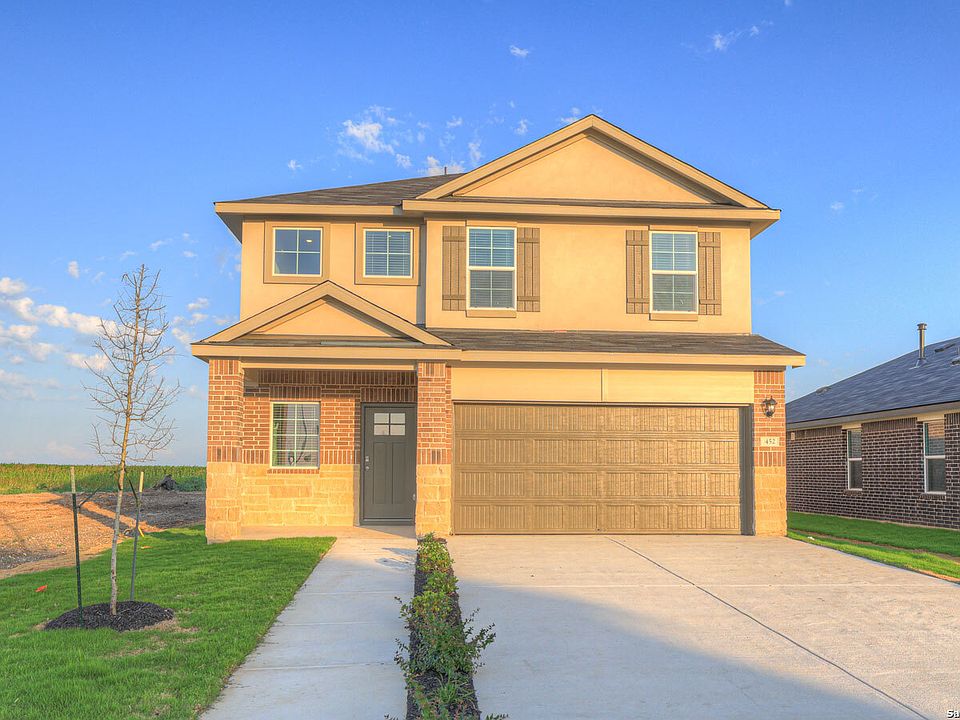SEPTEMBER/OCTOBER ESTIMATE COMPLETION. EASY ACCESS TO I-35. The Madison is our largest floorplan available at Whisper South in San Marcos, Texas. This beautiful two-story home features 5 bedrooms, 3 bathrooms, a gameroom, and 2 car garage across 2,497 square feet of modern living space. Our homes in Whisper South feature three-sided masonry exteriors. Entering the home from the covered front porch, you'll cross the foyer to the open concept living space. The kitchen faces out to the dining room and family room, allowing for conversations to flow easily across the room as you make dinner and unwind from your day. Enjoy the 9' ceilings and natural light from the three rear windows. The kitchen features an island with undermount sink, quartz countertops, a pantry closet, 36" upper cabinets, and stainless-steel appliances, including a gas range. A secondary bedroom and full bathroom are located off the kitchen, perfect for your guests or any family member that need their own space. The oversized utility room is also located off the kitchen and includes a closet for extra storage. Ascend the stairs to the second floor and you'll enter the gameroom. This room can easily be set up as another living space or play area for the kids. The primary bedroom is located at the front of the home. This oversized private ensuite includes an extra sitting area as well as an attached bathroom. Enjoy the walk-in shower double vanity with marble counter tops, private toilet area with a door, and an enormous walk-in closet. Three additional bedrooms and a full bathroom complete the upstairs space. Each bedroom has a closet with wood shelving and both secondary bathrooms have a shower/tub combination. The Madison includes vinyl flooring throughout the common areas of the home, and carpet in the bedrooms. All our new homes feature a covered back patio, full sod, irrigation system in the front and back yard, and a 6' privacy fence around the back yard. This home includes our America's Smart Home base package, which includes the Front Doorbell, Front Door Deadbolt Lock, Home Hub, Thermostat, and Deako Smart Switches.