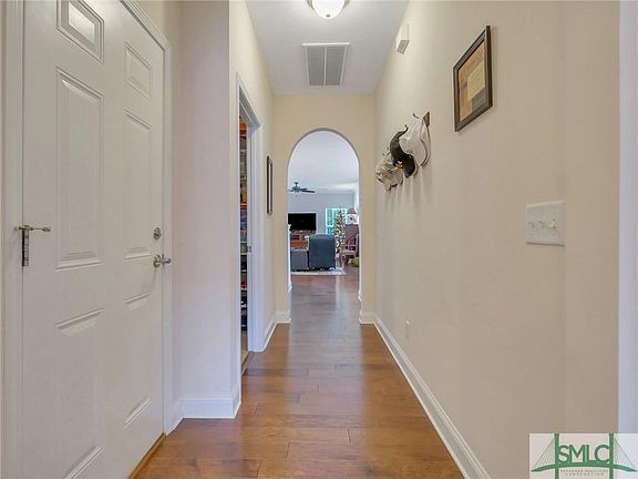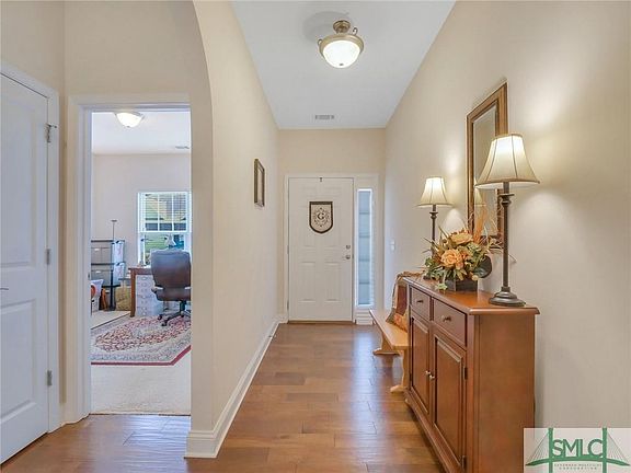 Maintenance Free One Level Living in Pooler's Premier Neighborhood! Functional Floor Plan Features Numerous Upgrades Including: 5" Hand Scraped Wood Floors, Crown Molding, Granite Counters in Kitchen and Baths, Large Laundry w Shelving and Hanging Racks..Awesome Kitchen Offers Lots of Counter Space, Stainless Appliances, Breakfast Bar and Pantry! Split Floor Plan Boasts Large Master Complete w Soaking Tub, Separate Shower + Double Vanities ..Additional Screened Porch and Patio Overlook Woodlands and Tranquil Lagoon..Totally Move-In Ready and Refrigerator Remains!! Gated Community w Pool, Tennis and Fitness Facility..Minutes from Shopping, Dining, and I-95 Access..