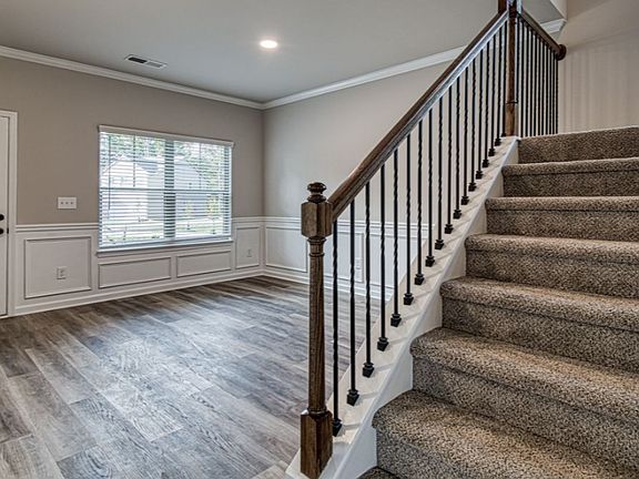 Open concept kitchen with walk-in pantry and island overlooking the breakfast area and family room.Primary suite with a sitting room, expansive walk-in closet, dual vanity, tub, and oversized shower.Living room offers a flexible space for hosting.