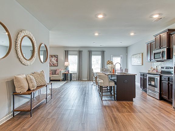Primary suite with expansive walk-in closet, spacious sitting area, trey ceiling, dual vanity, tub and walk-in shower.Open concept kitchen with oversized island overlooking breakfast area and family room.Private guest bedroom/study is airy and comfortable, perfect for a home office.Upper level laundry.