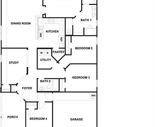 This plan showcases the Traditional, tried and true features, open layout, spacious living area. Vinyl flooring that looks like wood, granit countertops, stainless Gallery appliances, double vanity in the Bedroom 1, full sod, irrigation, gutters and a covered patio. A peninsula breakfast bar that connects the Dining and living area. A nice flex space at the entrance of the home that can be used as a formal dining or a study!