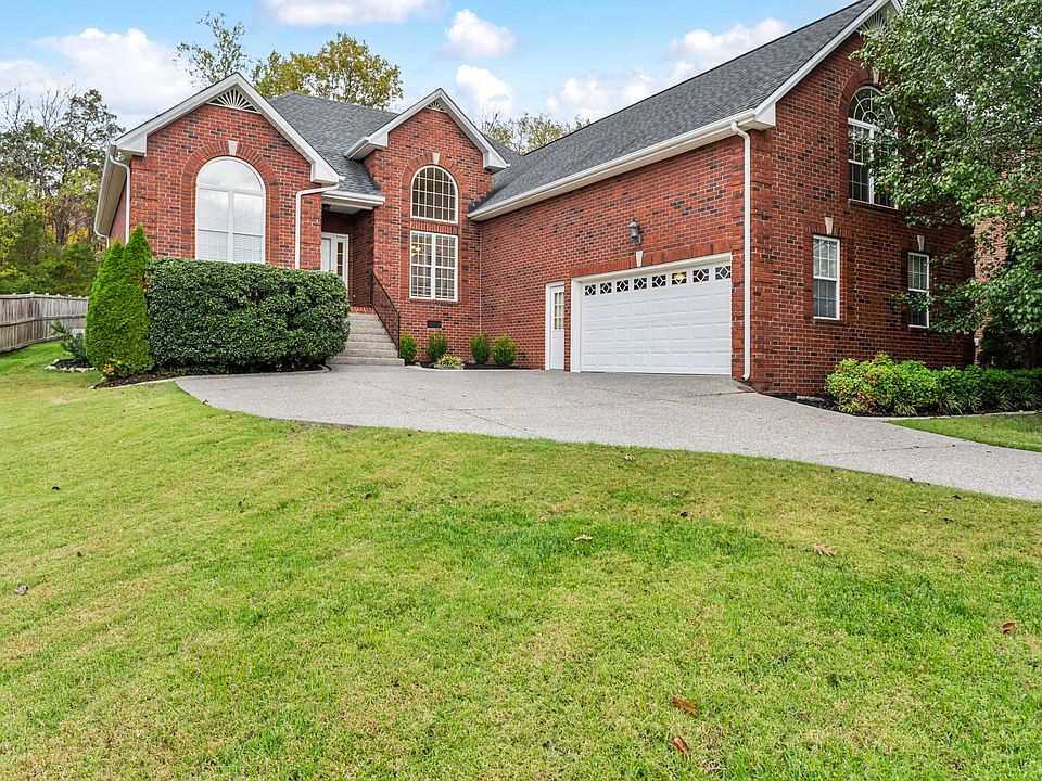 Beautiful all brick home in the highly sought after Mansker Farms neighborhood boasting 2 pools, basketball, pickle ball, tennis courts, volleyball & multiple playgrounds. As you enter this home, You will quickly notice the bright natural light filled living room; with vaulted ceilings, original hardwood floors & gas fireplace open to dining room and Kitchen. This home offers a primary suite with 2 additional bedrooms on the main floor in a split bedroom plan. This home was built by Morgan Homes. Extra large 2 car garage (29'x21') makes for an extra large bonus room. Large enough for a pool table, TV area, office space and more. Private treed lined backyard. Roof 7 yrs old * New kitchen appliances.