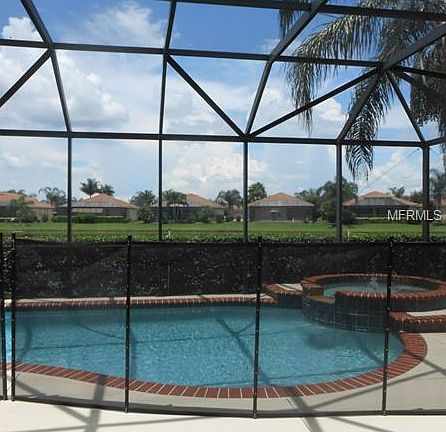 Beautiful two bedroom two bath home in Heritage Harbour situated on Cul-de-Sac. Gated golf community. Living and dining room combination with separate breakfast room and breakfast bar in kitchen. Solid surface counters and solid wood cabinets. Tray ceilings. Dual sinks in master bath. Mature landscaping, screened lanai with child safety pool fence. Beautiful view of the pond. Fannie Mae HomePath property.