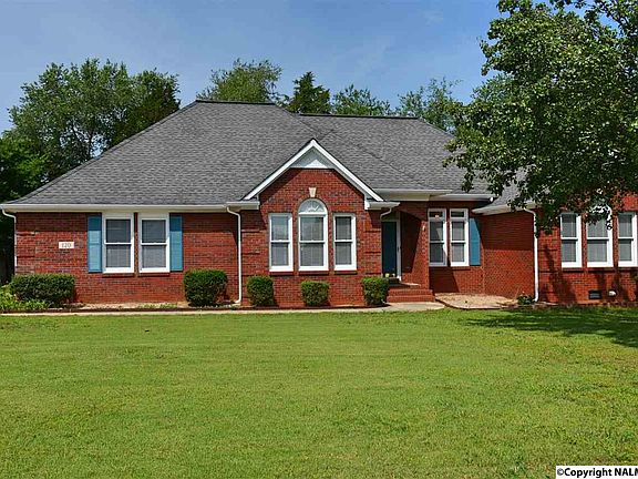 IMMACULATE WELL MAINTAINED BRICK RANCH IN CONVENIENT AREA! USDA-RD eligible for 100% financing! 15 minutes to arsenal, hospitals, shopping!! Updated kitchen w/ new granite/tile backsplash. Tiled wet areas. Spacious living room features high ceilings, crown moldings, recessed lighting, HW, and fireplace! Kitchen offers tile floors, a pantry, ample cabinetry great for storage, and is open to the breakfast area. Wood floors GRm/foyer. Huge master w/ his/her closet. Huge heated and cooled sunroom allows you to enjoy the views of the large trees outside overlooking the private backyard. Insl/garage and 2 50 gal water heaters! Tons of attic space. Curb/gutter on cul-de-sac.