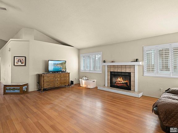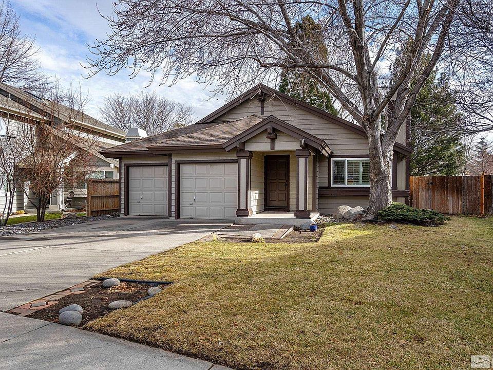 Highly sought after cul-de-sac in Edgewater estates. Nice open floorplan with high ceilings. The kitchen has a skylight, high ceilings, breakfast bar and spacious dining room that leads out to an enjoyable redwood deck to sip your morning coffee or gather for barbecues. Newer roof, new vinyl windows with shutters, new furnace and A/C. The primary suite has a large walk in closet and double sinks with a private toilette stall. The community features a private pool and plenty of attractive walking & bike, trails, as well as being part of the River walk to down town Reno. Just a short walk to Mayberry Landing, easy freeway access along with tons of shopping close by. Zoned for highly sought after schools.