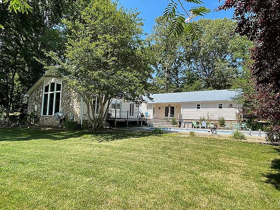 Beautiful lake home with Swimming Pool. 2 lots total (House sits on .8 acre lot, detached garage & boat ramp on adjacent .4 acre lot). Private pier, boat ramp, sea wall with walkway. Great neighborhood, beautiful large party/entertainment room with vaulted wood ceilings overlooking lake. In ground Irritation system, tankless propane water heater, upstairs bonus room.