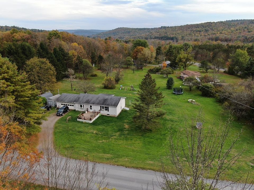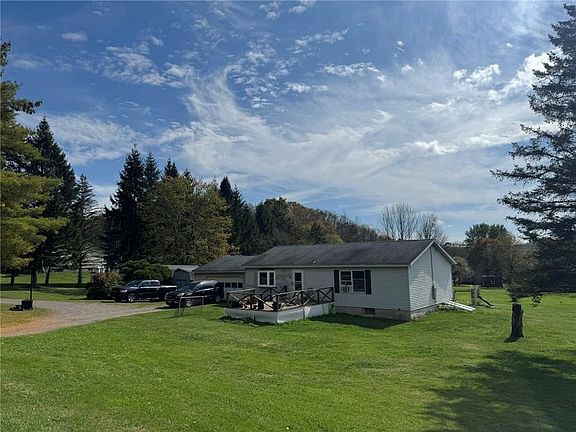 Sitting on over an acre of level yard, this wonderful 2 bed, 2 bath ranch offers an additional 2 bedrooms for a total of 4, and living room in the basement, offering an estimated 850 extra square feet of living area to go with the main level square footage of over 1,100 square feet. A newer kitchen offers plenty of counter space, an island, and matching appliances as well as an eating area which gives way to the main living room, two primary floor bedrooms, and two full baths. A two car garage attached provides room for your outdoor accessories or vehicle, and a separate mud room entry way from the garage provides additional storage area. Host your get togethers outdoors during the summer, or enjoy the view while the leaves change from your front deck, or covered back porch. A Generac has also been outfitted to provide peace of mind in the winter months. Call today for your private showing, and check out the virtual tour to view the interior, as well as the "defurnish interior" option.