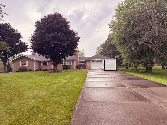 Discover serene living with this nicely maintained all brick, ranch home that sits on a nicely manicured 1.55-acre lot surrounded with mature trees and greenery. This home features an open-concept layout with natural lighting throughout. This spacious 4-bedroom, 3-bath home boasts stylish vinyl flooring, large kitchen with stainless steel appliances, eat-in kitchen area and ample counter space, generously sized bedrooms, a master suite, jacuzzi in the main bath and much more. There is an oversized laundry room which doubles as a mudroom, including a folding or craft area and cabinets. There is a large driveway for plenty of guests and a handy shed that adds extra storage. The basement is a huge full basement with wet bar, full bath and a flexible space for an office or guests. Enjoy the outdoors on a covered deck plus an additional deck with gates—perfect for entertaining. This property is a rare find, is peaceful, private, and move-in ready in the Southside School District.
