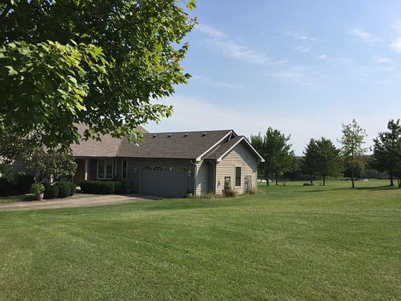 This Home was placed on the property to maximize the gorgeous county views! It has an awesome covered patio which overlooks a pond which is the home to much wildlife.The home has a contemporary vibe with an open concept, vaulted ceilings and a wood burning stone fireplace. Double your square footage and finish the basement which has tall ceilings roughed in full bath and dry as a bone! Master bath includes a large tiled shower w/ seat and whirlpool tub! You'll love the peacefulness and serenity. Kitchen has tons of cabinets with walk-in pantry!