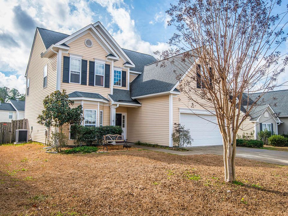 Perfect home in popular Plum Creek neighborhood of Summerville! Neighborhood pool and playground are just a walk down the sidewalk. There are 4 bedrooms & 2 and a half baths. Downstairs has hardwood floors throughout. An eat-in kitchen features upgraded solid surface countertops a glass top stove a center island pantry and butler's pantry. The floor plan is open with the kitchen leading to the spacious family room with it's gas fireplace. There is also a lovely formal dining room downstairs. The master bedroom features two walk-in closets and a tray ceiling. The master bath has a separate tub and shower. There are three additional bedrooms upstairs one of which is currently being used as a bonus/frog. Screened in back porch large fenced in back yard and storage shed.