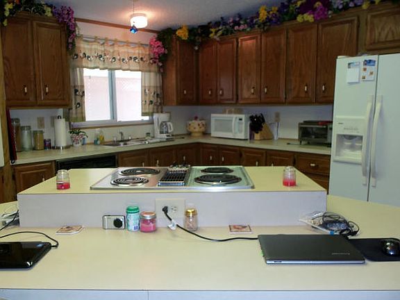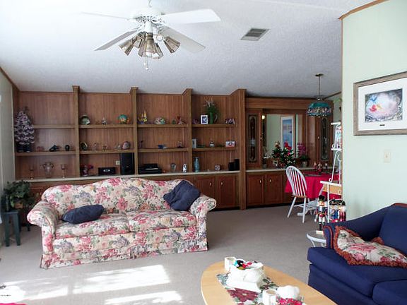 Brand new roof with transferable warranty! Popular 55+ gated community of Forest Lakes. 2br, 2 bath spacious manufactured home ( Palm Harbor- Double wide) complete with Spacious kitchen w/ breakfast bar, large Living room, Dining room, Family room Florida room,workshop, patio and carport. Lots of built ins and closet space. Partial lake view. Individually owned deeded lot. RV Parking available. Conveniently located near heated pool and clubhouse. LOW HOA_ $60 per month.
