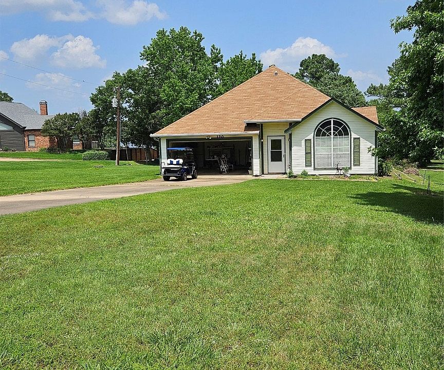 AUCTION HOME...SOLD AS-IS...Some TLC will make this lake front home even better. 3 bedroom 2 bath home, with 2 living areas, office-study, formal dining area and huge kitchen. Kitchen, Dining and 1 Living area are all open to each other. Additional living area at the front of the home. Home has a 2 car attached garage, utility room, and large closets. The Primary Bedroom has a large bathroom and walk-in closet. Property also has a detached 2 car garage with additional space for a car or boat. Plenty of nice mature trees. With some trimming back patio will have a great view of Lake Fork. Do not miss this opportunity to by a home on Lake Fork. Buyer to verify all information.