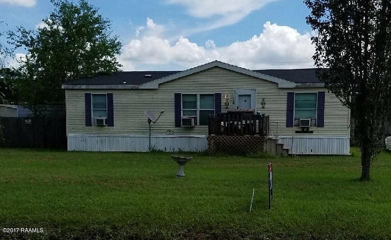 This double wide mobile home sits on 1/2 acre quite, country road just minutes from Sunset and Opelousas. Home needs some TLC but has great potential. 10x20 shop, 4 window units & new roof in 2016 & sits on a full slab. Fiberglass steps on front & metal porch step on back.